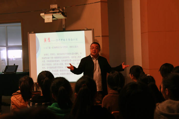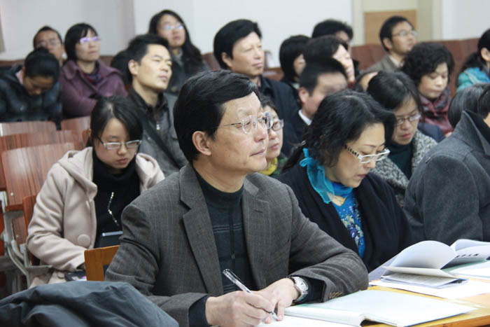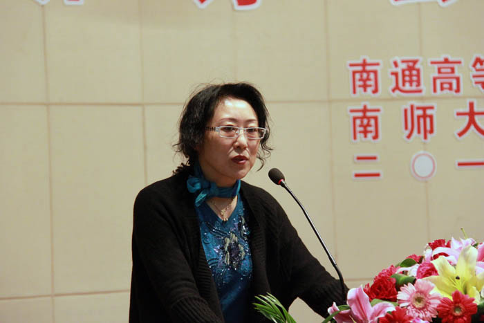 研讨会首先举行了简短的开幕式,开幕式由校长助理、人文系主任都樾主持,副校长潘健和南师大出版社徐蕾副总编先后致辞。随后,与会人员观摩了人文系梁文勤老师和许迅老师开设的观摩课课。 梁老师上的内容为“阅读指要”中“缤纷的语言”一节;许老师上的内容为“教师语言实践教程”中“演讲中的手势语训练”一节。两位老师先进的教学理念和纯熟的教学技巧以及鲜明的教学风格给与会者留下了深刻的印象。之后,人文系副主任赵晓梅简明扼要条理清晰地向大家介绍了我校前一阶段语文教学改革的情况;师范教育专家朱嘉耀先生作为特邀专家作了主题发言,他回顾了我校几十年来的教育改革和探索的历程,他指出,正是在不断探索的过程中,我校的语文教育事业才结出了丰硕的成果。