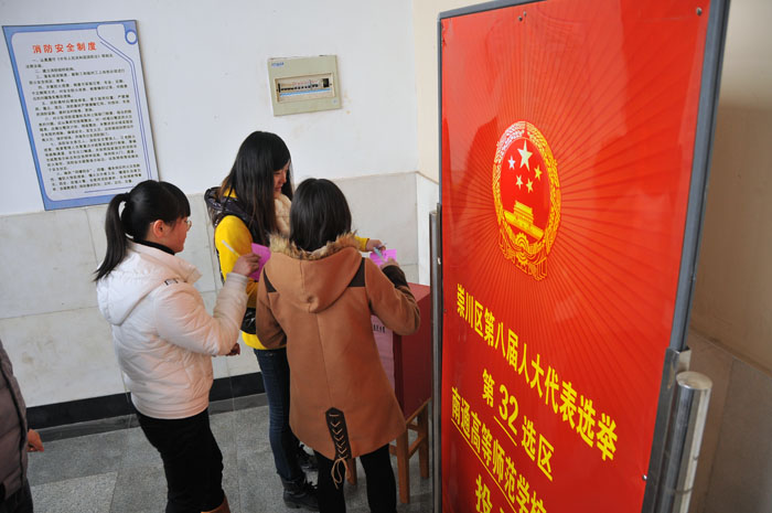 崇川区第八届人大代表第32选区南通高等师范学校选民小组选举于2月28日下午举行。全校教工选民和年满18周岁的学生选民总数581人,有571位选民参加了投票,其中委托投票31人。活动在选举投票工作小组孙国春、李富才、虞福美等同志的组织下井然有序的进行。