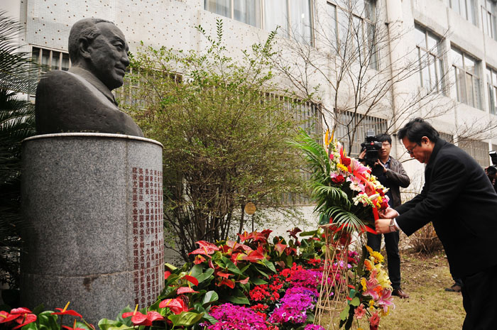 接着他们来到无产阶级革命家刘瑞龙同志塑像前,刘利民同志向塑像敬献了花篮,表示了对革命先驱崇高的敬意。