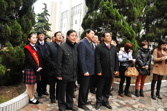 教育部办公厅副处级职员张权、师范司办公室主任陈武,中国教育电视台台长助理张淑萍,江苏省教育厅基础教育处处长马斌、师资处处长崔春霞,市委副秘书长周建,市教育局局长郭毅浩,市委教育工委书记黄建辉等同志一同参加了调研。