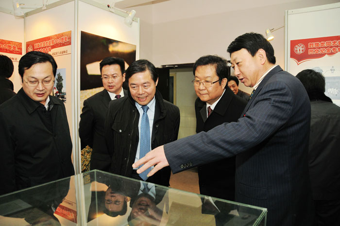 刘利民等领导一行还参观了校史室和刘瑞龙同志纪念展厅,并在百年纪念标志前合影留念。