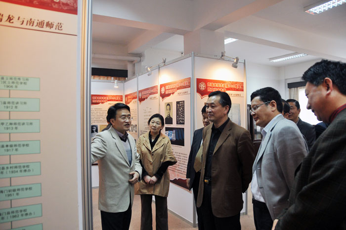 省政协领导们瞻仰了无产阶级革命家刘瑞龙同志的塑像和江苏省第一代师支部纪念碑,参观了校史馆并在百年师范纪念标志前合影留念。