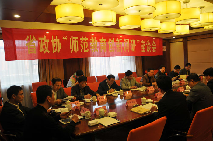 在接下来进行的“师范教育创新调研座谈会”上,市教育局局长郭毅浩向省政协调研组作了题为《高举师范教育旗帜创新教师教育体系》的专题汇报,详细介绍了我市师范教育改革创新与建设发展的基本情况。