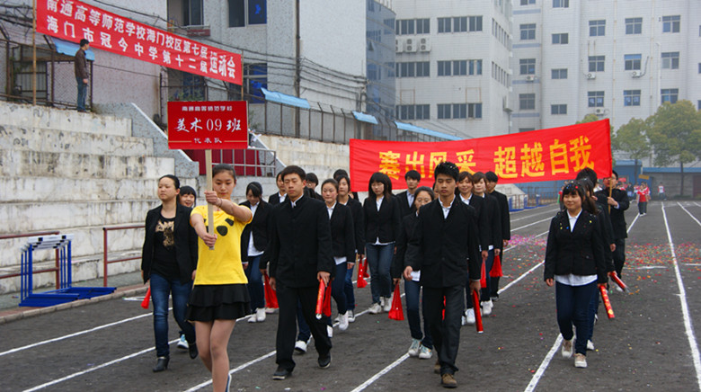 4月19日上午,海门校区举行了第七届田径运动会。本届运动会海门校区共有14个代表队参赛。赛场上,各代表队运动员奋力拼搏,赛出水平,赛出风格,取得了良好的成绩。艺体系体育09班获得丁组团体第一名、美术09(1)班获得丙组团体第一名,外语系英语09(2)班、艺体系体育08班等7个代表队评为“精神文明代表队”。 4月20日 下午,为期两天的运动会圆满结束。