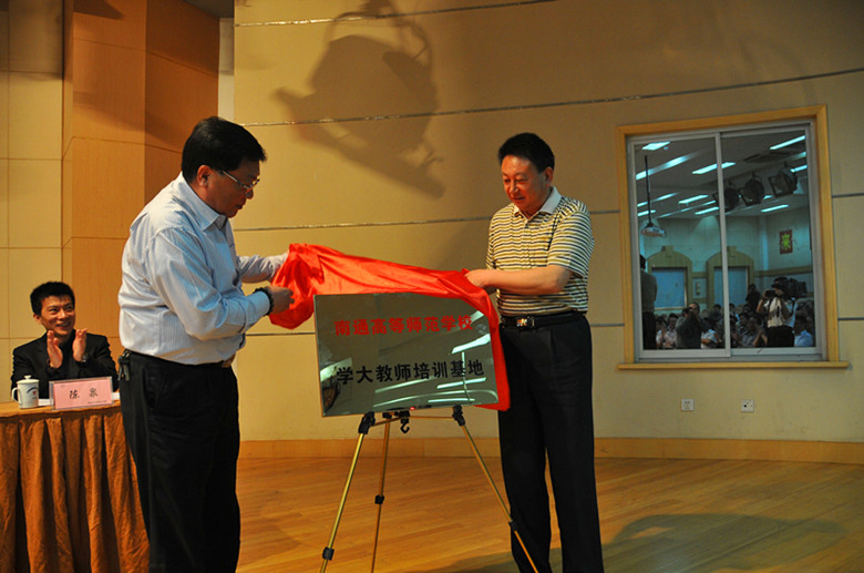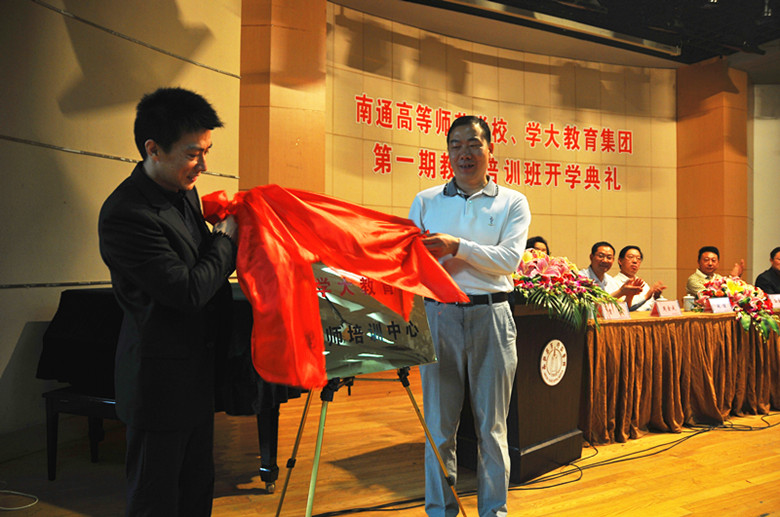 王建明先生、陈泉总经理以及学员代表都在本次开班典礼上作了发言,开班典礼进行中丁校长、王建明先生为“南通高等师范学校学大教师培训基地”进行了揭牌,孙国春副校长、陈泉总经理为“学大教育教师培训中心”进行了揭牌。