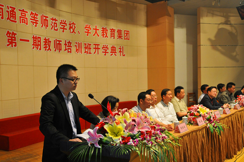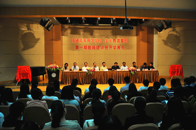 5月8日上午,南通高等师范学校、学大教育集团第一期教师培训班开班典礼在我校综合楼四楼报告厅隆重举行。南通市教育局副局长姜学勤、原南通市教育局局长王建明、南通市教育局职社教处处长李俊华、南通市教育局高教处处长倪健、南通高等师范学校校长丁兆雄、南通高等师范学校副校长孙国春、南通学大个性化研究院院长徐泽洲、南通学大高级顾问贾真、南通学大总经理陈泉、副总经理周余成以及培训班全体学员参加本次开班典礼。