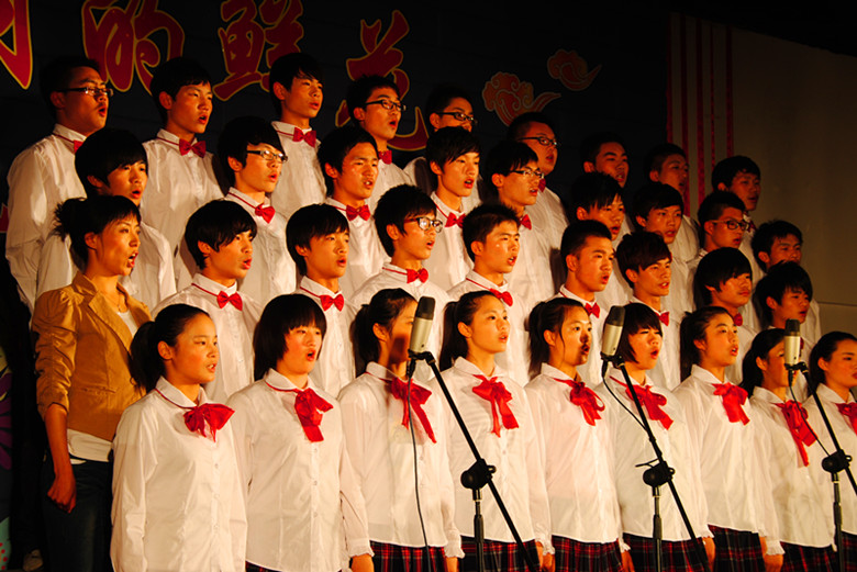 经过激烈的角逐,外语系英语09(2)班、英语09(3)班、艺体系美术09班、体育10(1)班夺得本次大合唱比赛的一等奖。