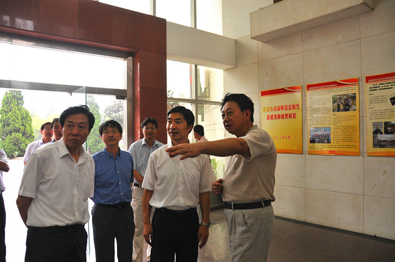 8月9日下午,副市长朱晋一行来我校视察。他参观了江苏省第一代师支部纪念碑、校史馆和刘瑞龙同志纪念展厅,随后朱晋一行在会议室与教育局和学校领导就我校的建设发展问题展开调研。在听取了校长丁兆雄的专题汇报之后,朱市长详细了解了学校目前事业发展的现状和问题,并对下一阶段学校进一步提升办学层次、加快教育现代化等方面作了重要指示。