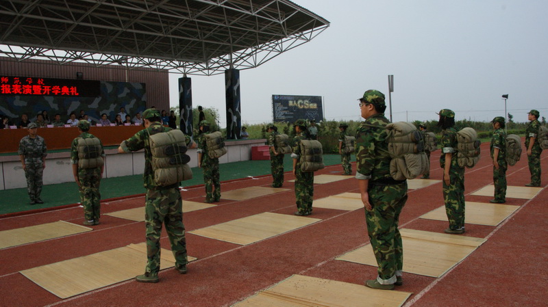 在庄严的升旗仪式后开始了新生阅兵仪式和汇报表演。每个方队整齐待发,他们斗志昂扬,步伐整齐地迈进阅兵场,赢得了在场领导、老师的热烈掌声。精彩的擒拿表演,打背包表演无不展示着“现代军人”的钢铁意志和飒爽英姿。