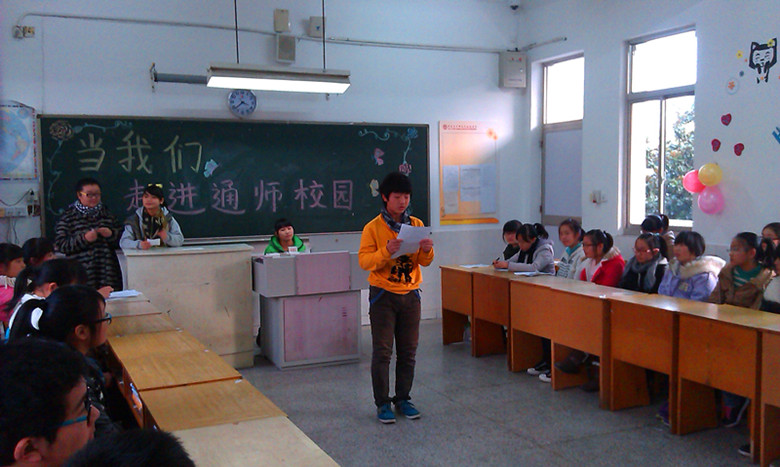 12月3日下午第三节课,南通校区12级主题班会观摩活动在各班教室进行。根据学期工作安排,本学期学工处将开展两次主题班会观摩活动,本次活动是其中之一,活动的主题为 “当我走进高师校园”,南通校区所有德育主任和班主任参与了观摩。