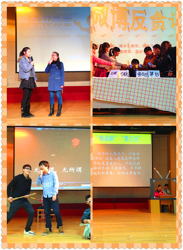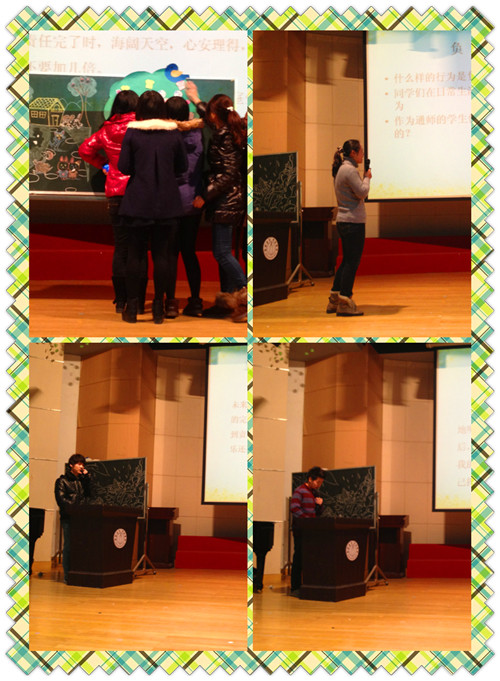 为了提高班主任老师利用主题班会推进班级工作的实效,12月22日上午,学工处根据学期工作计划,在综合楼四楼报告厅向南通校区全体班主任老师和班级学生代表开放了四堂主题班会。四堂班会由各系部推荐,分别是人文系小教10(2)班段正芝老师开设的《缔造最美的班级 》,学前系学前09(2)班黄培红老师开设的《多彩思维 就业准备 》,数理系计算机11 班应可老师开设的《 即将到来的十八岁 》和艺体系美术11(2)班袁远老师开设的《“微”力无穷 》。