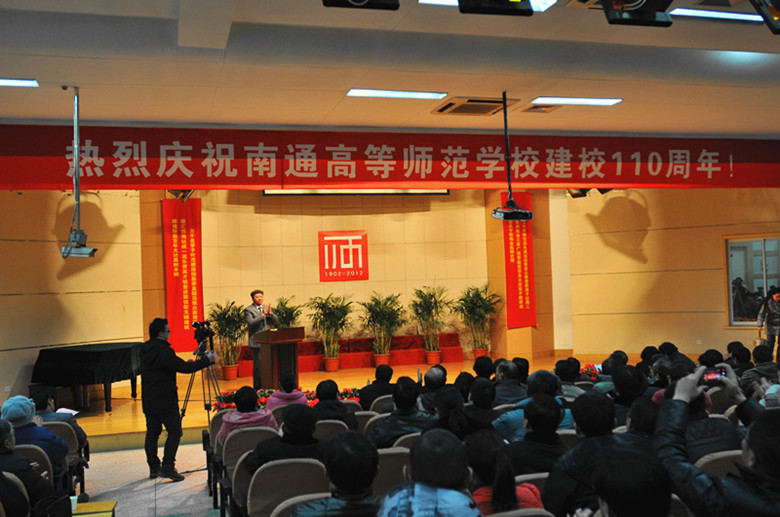 隆冬岁末,百川汇流,高朋满座。2012年12月31日,我校隆重举行建校110周年纪念活动。南通市委、市政府、市教育局部分老领导、老同志,来自南通各县(市、区)的校友代表、学生家长代表,各兄弟学校代表、实习基地代表,在通的教职工代表、学生代表,以及长期以来关心支持学校办学的各界朋友欢聚一堂,同贺我校110年华诞。