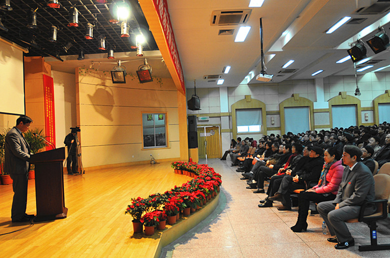 在纪念集会上,校长丁兆雄教授首先致辞。丁校长说,一百一十年来南通高师的发展历程是中国师范教育现代化求索之路的一个缩影,也是一份弥足珍贵的教育财富。丁校长认为,南通高师的教育传统可以梳理归纳为五点:一是树立“首重师范”的国民教育理念;二是构建“走向现代”的师范教育体系;三是坚持“社教联结”的学校办学模式;四是探索“知能并重”的教师培养路径;五是涵育“中西汇通”的学校文化特色。丁校长指出,南通高师人在学校升格转型、创新发展的过程中,必须传承和发扬在一百一十年的办学实践中逐渐积淀起来的优秀文化传统。在致辞中,丁校长还向大家介绍了他12月18日在中南海受到刘延东国务委员接见的情况,并转达刘延东了国务委员对全校师生的深切问候和对学校发展的重要指示。在致辞中,丁校长还代表学校党政向与会嘉宾、校友们表示热烈欢迎!向为我校建设发展作出贡献的前辈先贤们致以崇高敬意!向辛勤工作在教育教学、管理服务岗位上的全校教职员工表示亲切问候!