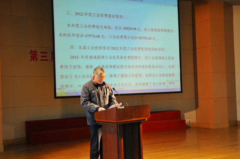 本次两会是在全校上下认真学习贯彻 “十八大”精神、学校升格发展全面提速的关键时刻召开的一次重要会议。大会始终贯穿求真务实、积极进取的主旋律,洋溢着浓厚的民主和谐气氛。会议期间,各位代表听取并审议通过了丁兆雄校长代表学校所作的题为《抢抓机遇,集聚资源,负重实干,攻坚克难,为加速建成南通师范高等专科学校而努力奋斗》的工作报告,孙国春主席代表工会所作的《履行工会职能,共建和谐校园》的工会工作报告,听取了工会经费审查报告,阅看了各部门的书面工作述职,对工会、各部门的年度工作情况进行了测评;并听取了学校三届一次教代会提案办理情况和三届二次教代会提案征集情况的通报。会议顺利完成了预定的各项任务。