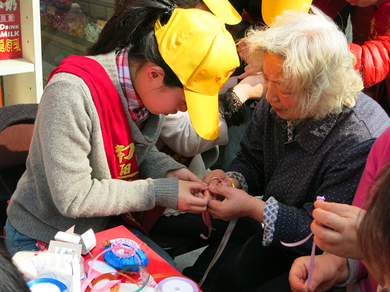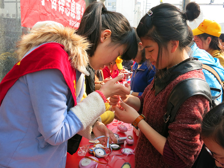 在此期间,我校学生们热情又耐心的教授人们如何制作肥皂花篮。对每个人都是手把手的教,不厌其烦的帮助他们完成皂篮的制作。当一个个漂亮的皂篮呈现在眼前时,大家的心里都是无比的充实与满足。