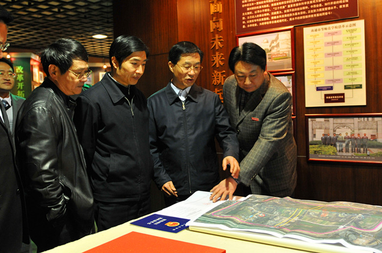 4月3日,副省长曹卫星率省政府办公厅、省教育厅、省财政厅负责人来南通调研教育现代化建设。上午8点30分,曹省长一行在副市长朱晋、市教育局局长郭毅浩等同志的陪同下对我校的建设发展进行了调研。