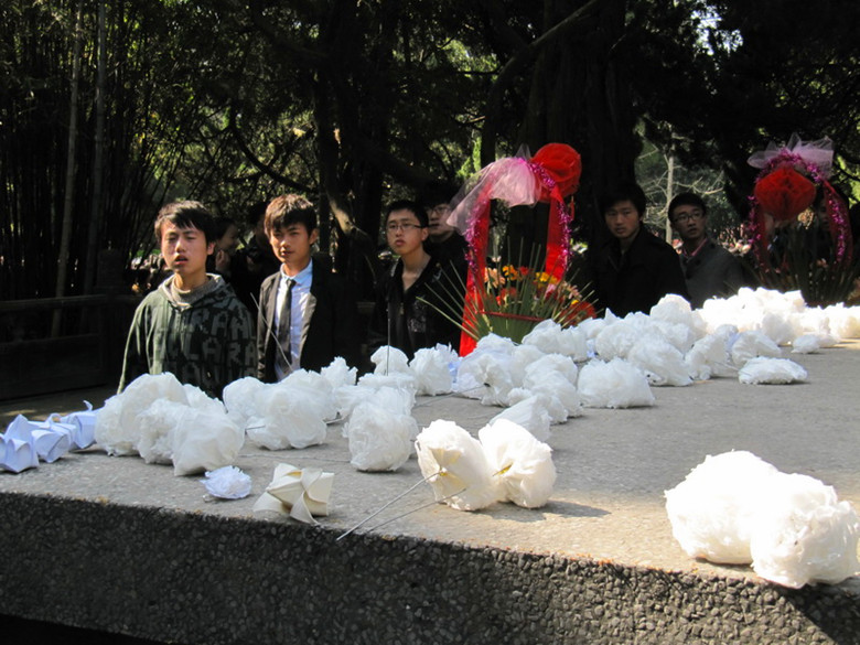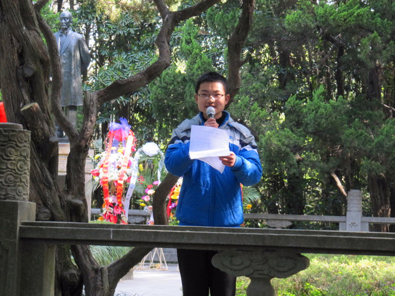 4月3日上午,宁静而美丽的啬园,松青柏翠,好鸟时鸣。南通校区和三里墩校区的2012级16个班的学生怀着浓浓的思念,带着深深的敬仰,在张謇先生墓前举行隆重的拜谒活动。