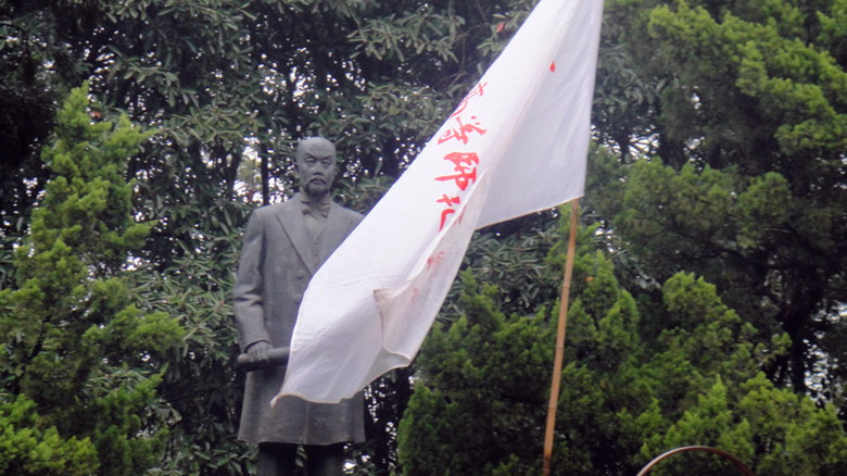 在庄严肃穆的气氛中,在猎猎飘扬的校旗下,同学们全体肃立,学生代表分别向张謇先生、张孝若先生墓前敬献了上书 “伟业化春风,千秋曷又穷”的花篮,并向铜像三鞠躬。所有同学依次绕墓地一周,献上亲手制作的小百花,向张謇先生表达敬意。