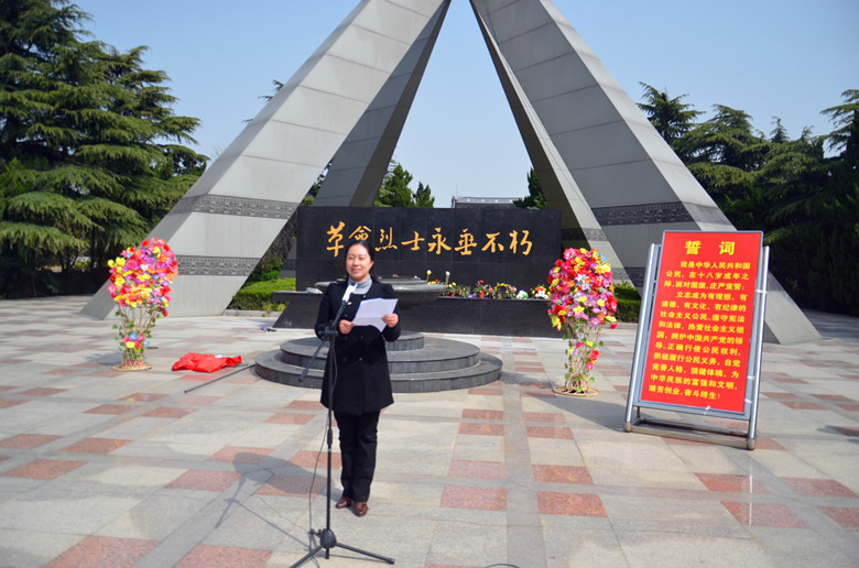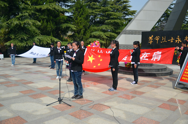 4月9日上午,南通高师校团委在南通钟秀烈士陵园内举行了清明祭扫暨十八岁成人宣誓活动。参加此次活动的领导老师有:校团委书记魏荣华老师、外语系团总支书记陈琳老师、学前系团总支书记陶吟吟老师。