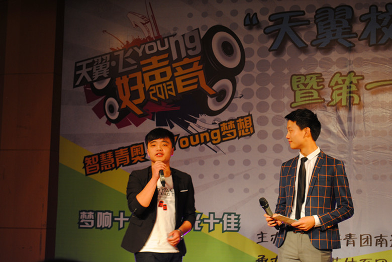 为了丰富校园文化生活,推动学校精神文明建设,活跃学校教育氛围,锻炼和发展学生的才能,6月8日下午,首届“天翼校园好声音”歌咏大赛在综合楼四楼报告厅隆重举行。这次活动由校团委主办,艺体系团总支、校学生会宣传部承办,中国电信南通分公司赞助。莅临本次大赛的领导、老师有:孙国春校长、都樾校长、中国电信校园中心主任丁伟先生、中国电信城东支局局长李培培女士、魏荣华主任、朱谦祥主任、王兴明主任、顾新辉主任、杨美娟主任、茅永丰主任、外语系团总支陈琳老师、艺体团总支丁苑老师、艺体系宋乐 老师、俞佳老师等。
