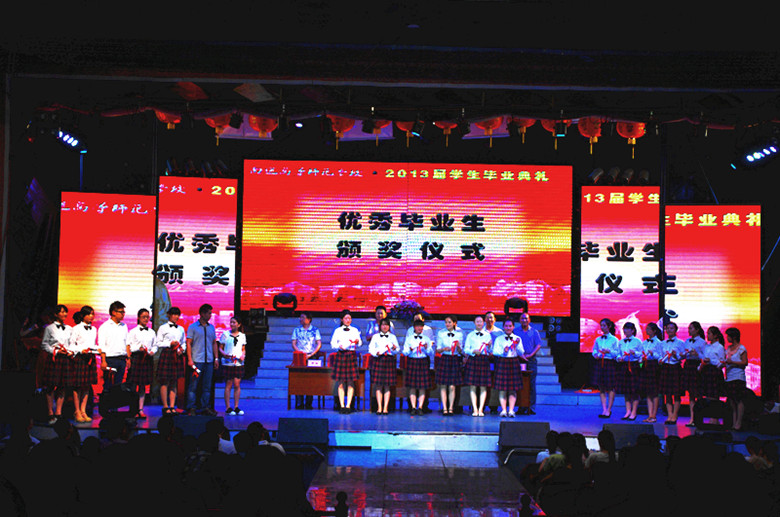 学工处在典礼开始之前精心准备了《栀子花开》、《同桌的你》、《友谊地久天长》等充满温情歌曲,并将学生们在校期间的活动照片制成PPT在大型电子屏上滚动播放,深情并茂PPT将入场的学生一下子带进了毕业典礼的氛围中。典礼开始,学校党委书记黄建辉宣读了2013届优秀毕业生的表彰决定,李雯同学代表全体毕业生深情诉说对母校老师们五年来辛勤培育的感恩与依恋,坚定地表达对未来美好生活的向往和继续搏击人生的决心。