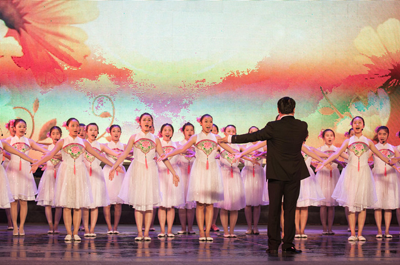 本次演出我校也组织了庞大的演出阵容。三个大型节目共有近150名同学参加。其中诗朗诵《教育的颜色》用音、诗、画的形式充分展现了南通教育勇攀高峰、亮点纷呈的喜人局面;曾经在去年获得“江苏省紫金合唱节”金奖的节目《回娘家》一出场就赢得了现场阵阵掌声,更是把演出推向了高潮。