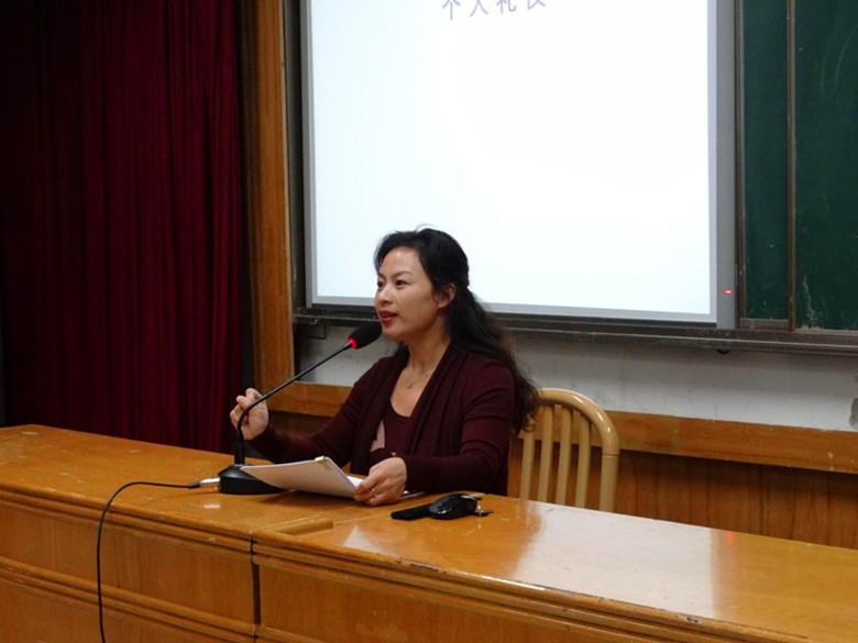 10月28日晚七点,海门校区2013级新生在二楼阶梯教室听取了沈佩菊老师的讲座——文明礼仪伴我行。