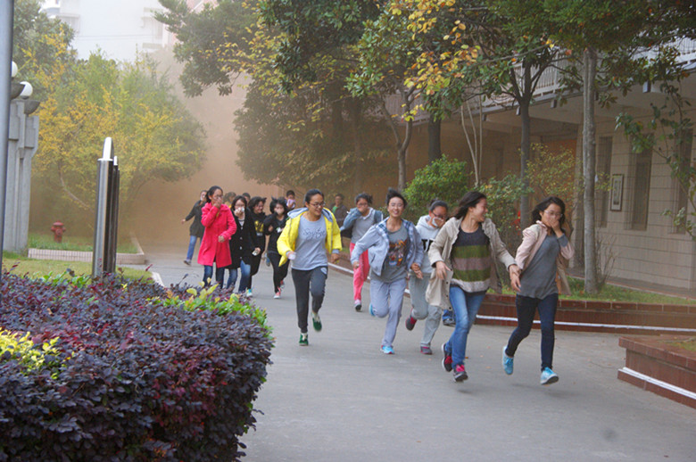演习开始前,学工处马文娟副处长对全体同学进行了广播动员,希望同学们做到思想上高度重视,演习时安全有序。然后同学们在教室收看了消防安全专题片。