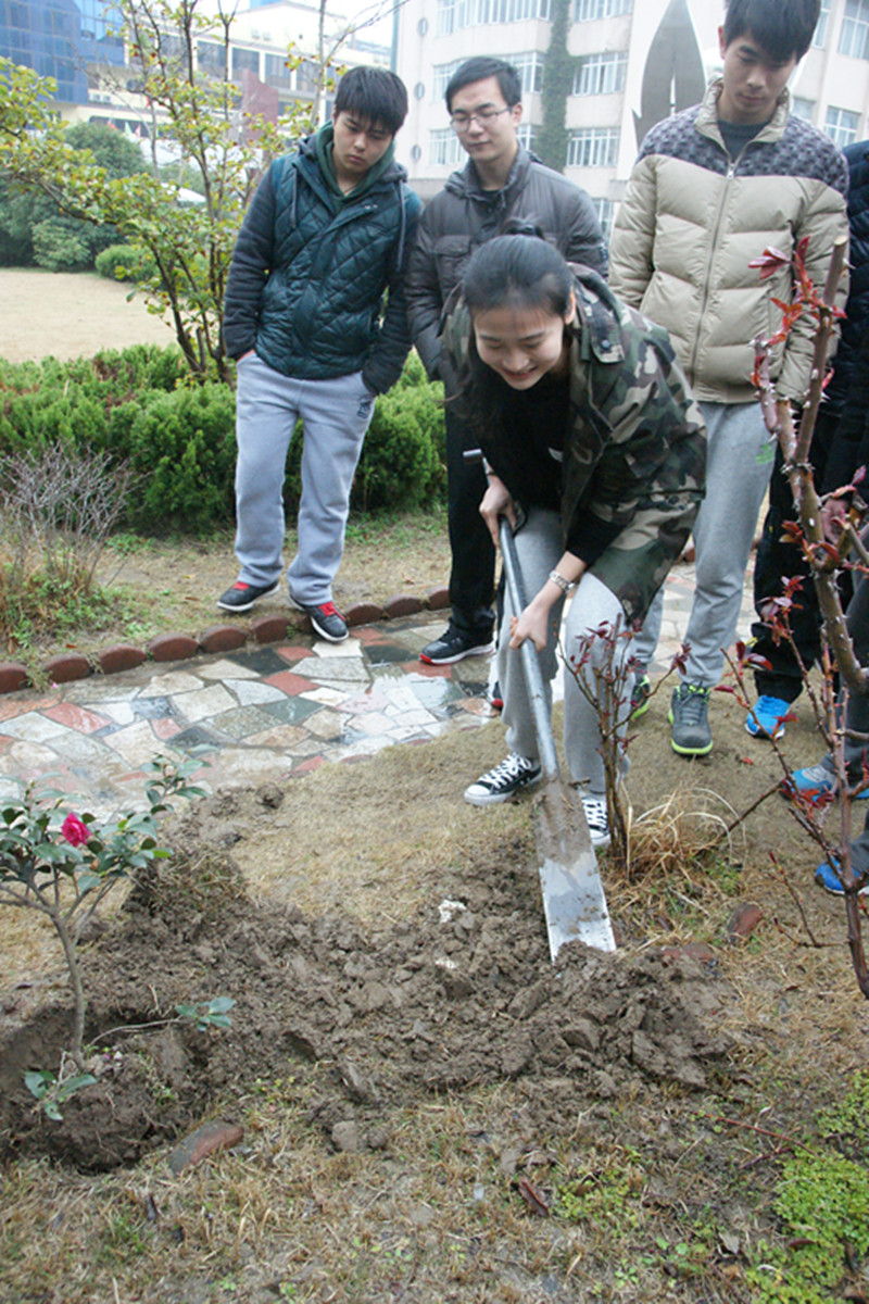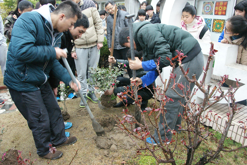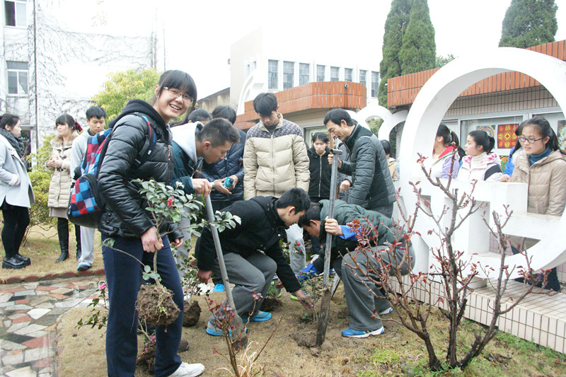 春回大地,万象更新。 又是一年芳草绿。在这春意盎然,生机勃勃的阳春三月,我们又迎来了一年一度的植树节。由校团委主办,体育系承办的3.12植树节在海门校区内花园拉下帷幕,出席今天植树节的对象有杨肖虎、马文娟、徐培锋、曹小平以及各班学生代表各两名。 杨 老师还对此次植树做了讲话:绿色是大自然的颜色,绿色孕育着生命与希望,没有绿色,就没有我们人类。我们要爱护每一片绿叶,爱护每一株幼苗。保护地球,爱护环境,绿化校园,从我做起,从身边做起。