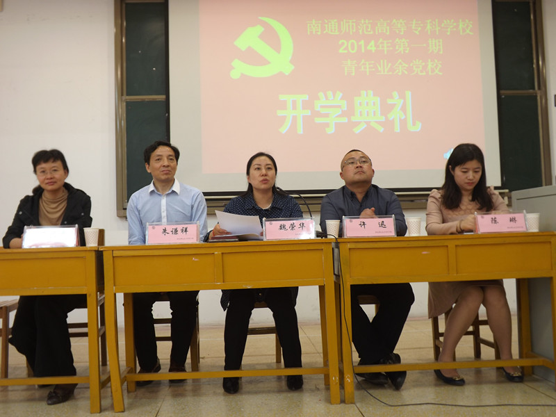 5月上旬,通师高专第一期青年业余党校开班典礼分别在南通校区、海门校区举行。党委陈情副校长、校办魏荣华主任、党办许迅副主任、学工处杨肖虎副处长、缪兴秀副处长、外语系朱谦祥主任、美术系陈竹林主任、人文系秦慧绒老师等分别出席了两校区的开班典礼。本期青年业余党校共有248名学员,分别聘请陈琳老师、李春雷老师担任培训班班主任。