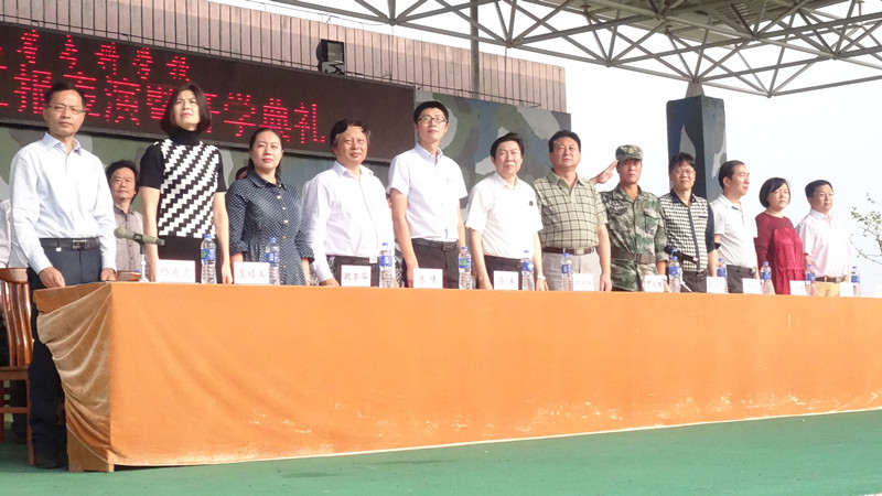 随着军乐的响起,丁兆雄校长在两名军教官的陪同下检阅学生方阵。在雄壮的军乐声中,我校2014级新生迈着矫健的步伐,朝气蓬勃、意气风发地通过主席台,接受学校领导和军训教官的检阅,他们响亮的口号和威武的阵容,赢得了全场阵阵热烈掌声。