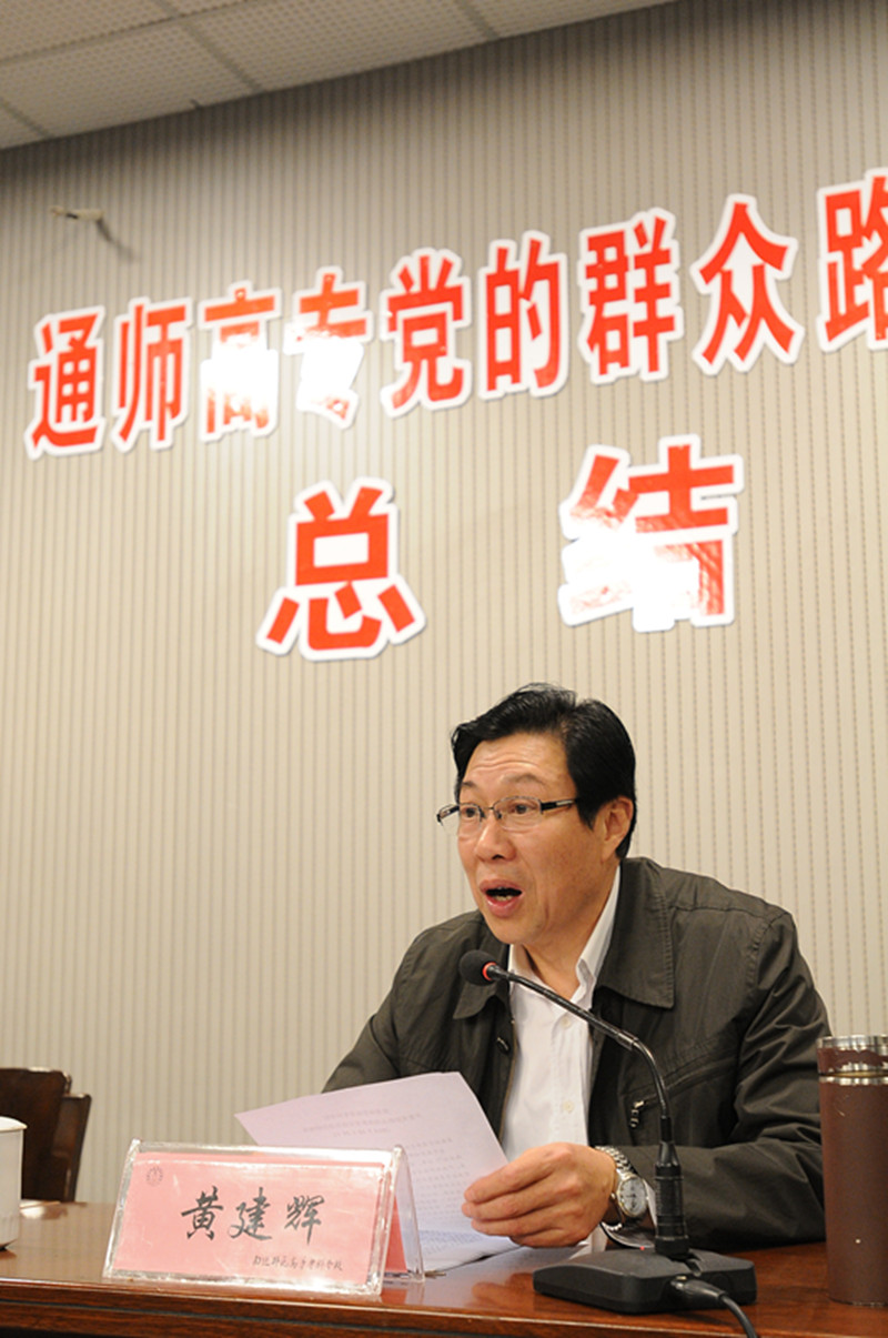 会上,校党委书记、校教育实践活动领导小组组长黄建辉同志代表校党委就我校教育实践活动的开展情况作总结报告。黄建辉同志首先回顾了我校开展教育实践活动以来的基本情况,他说:“从今年2月26日召开学校群众路线教育实践活动动员大会,传达上级党委关于开展教育实践活动的精神开始至今,学校开展教育实践活动共历经近8个月的时间。参加本次教育实践活动的有校领导班子成员7人,13个党支部共计党员215名,其中党员中层干部38人。在学习教育、征求意见环节,党委中心组学习专门组织5次中心组专题学习会,重点学习党的群众路线观点和习近平总书记系列重要讲话精神,并围绕“增强为民意识,践行群众路线”、“开展创先争优,推动改革发展”、“保持清廉本色,坚决反对‘四风’”、“弘扬务实作风,强化责任担当”四个专题开展学习讨论。共收集到150余条师生反映的原始意见和建议,并整理合并为55条,发出整改通知单55份。各党支部按照学校教育实践活动领导小组要求,认真学习规定的学习资料,征求师生意见建议。在查摆问题、开展批评环节,领导班子及其个人按照“四个必谈”的要求,领导班子成员分头采取召开座谈会、实地调研、个别谈话等形式,查摆问题,累计召开校级层面座谈会6次、参加人员超过70人次、发放调查问卷600多份。党员干部认真撰写班子及个人对照检查材料,并在此基础上召开了专题民主生活会和组织生活会。在第三环节中,领导班子根据“四个回应”的要求,制定并公示了班子整改方案及个人整改清单,逐条建立了整改路线图、时间表、责任人,体现了开展活动立竿见影的效果,反映了活动取得的制度成果,力促作风建设常态化、长效化。”