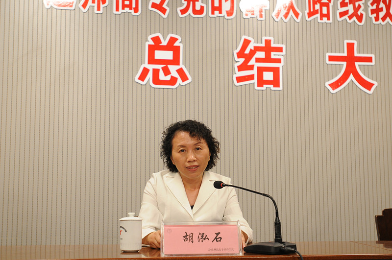 最后,市委第十二督导组组长胡泓石同志发表讲话,她用“五个坚持”表述了对我校教育实践活动的总体评价,即:坚持领导带头,示范作用充分发挥;坚持学教在先,思想根基不断夯实;坚持问题导向,党内生活严肃认真;坚持群众参与,努力做到取信于民;坚持知行合一,立行立改取得实效。她还对我校做好现阶段的工作提出了如下具体意见:一是要以学习贯彻习近平总书记重要讲话精神上下功夫,巩固加强作风建设的成果;二是要在落实从严治党下功夫,主动担责,认真履责,全力尽责,切实抓好学校的党建工作;三是要在整改落实上下功夫,要在解决“四风”问题的根基上常抓不懈;四是要在建章立制上下功夫,要将活动中形成的良好工作作风和工作方法延续到学校教育教学的各项工作中去。