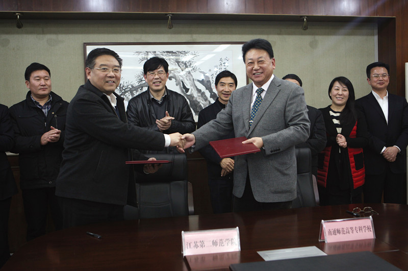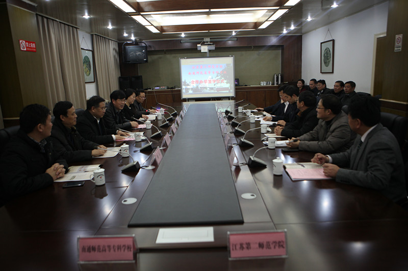 12月11日下午,江苏第二师范学院党委书记李洪天一行来通考察交流,与我校签署了合作办学协议。南通市副市长朱晋,市政府副秘书长陆善平,市教育局局长郭毅浩、副局长姜学勤等出席了签约仪式。与会领导回顾了两校的办学历史、业绩及合作历程,一致认为两校合作办学有着深厚的基础和渊源,也有着现实的意义和长远的价值。