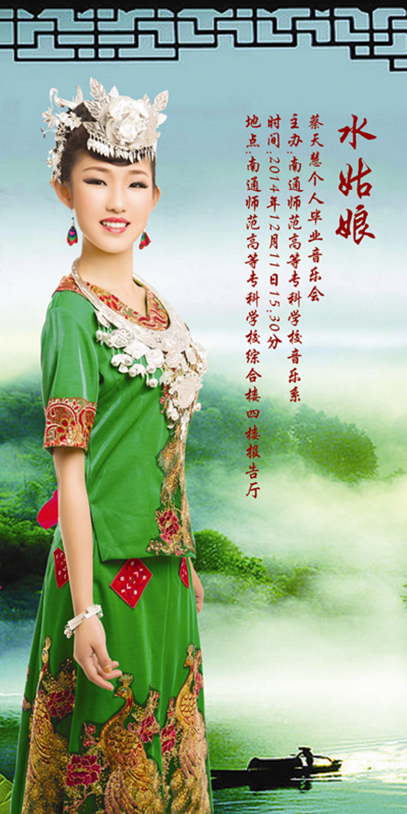 12月11日下午三点半,蔡天慧同学在我校南通校区综合楼四楼报告厅举办了个人独唱音乐会“水姑娘”。