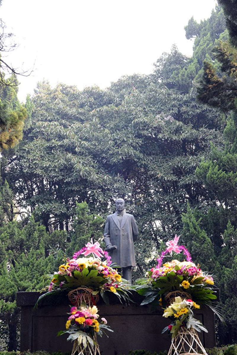 在庄严肃穆的气氛中,在猎猎飘扬的校旗下,同学们全体肃立,学生代表分别向张謇先生、张孝若先生墓前敬献了花篮,在向铜像三鞠躬。所有同学依次绕墓地一周,向张謇先生表达敬意。