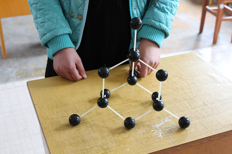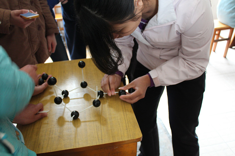 3月30日中午12点15分在A楼底楼的一个教室里进行了心灵手巧活动。先给出了一个碳链的模型让大家观摩之后,凭着对碳链结构的了解和记忆拼搭出与模型一模一样的形状。比赛由两个人搭档完成,靠的不仅是对碳链形态结构的理解和认识,同时考验了两个人的默契程度。理11班的同学以合理的分工、默契的配合,仅用了1分09秒,获得了心灵手巧活动的第一名。
