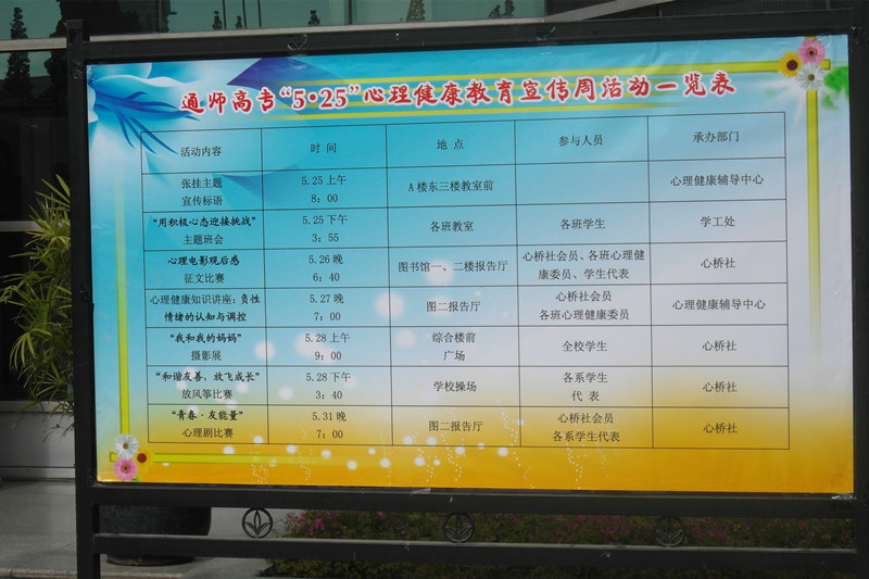 5月25日至5月31日,学工处、团委、学生心理健康辅导中心、心桥社联合举办了2015年度“5·25”心理健康教育宣传周系列活动。
