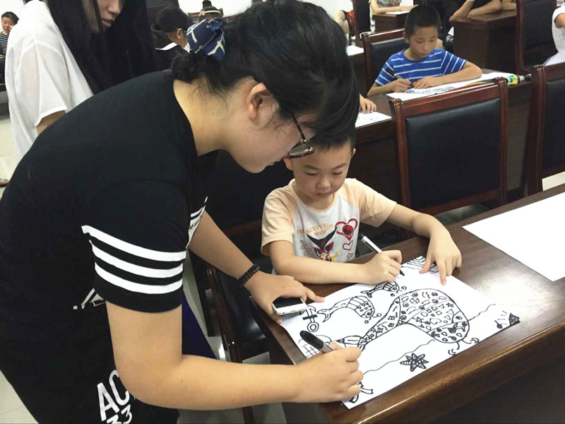 暑期社会实践是大学生思想政治教育的重要环节,2015年8月10日上午9:00,我校数理系团总支师生十人来到文峰街道三里墩社区参加“教小学生画黑白装饰画”活动。首先老师、同学们利用多媒体向同学们展示了一些黑白装饰画的图片,学生们观看并展开讨论。其次,让学生们自己发挥想象进行绘画,最后,对学生完成的作品进行修改,肯定优点、指出缺点、鼓励创新。