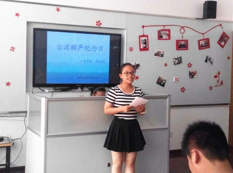 七月,是火热的时节;七月,是纪念的时节;七月,是希望的时节。7月21日下午,人文系团总支在我市虹桥社区成功举办了以“回溯历史,展望未来”为主题的7·15台湾解严28周年纪念活动。