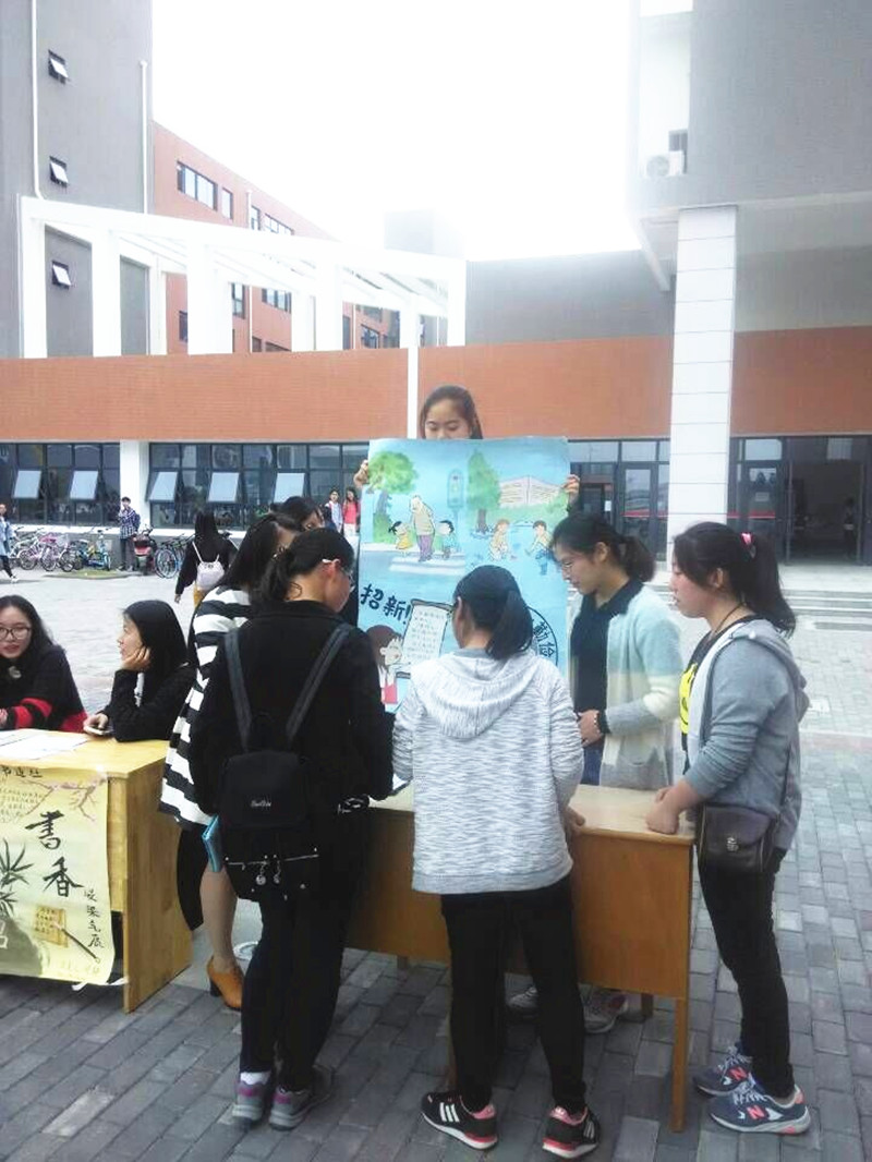 2015年10月14日中午12点30,在新校区食堂前空地举行了社团招新活动。新的学期,新的开始,全新的社团活动,众团出击,吸纳优秀人才加入。