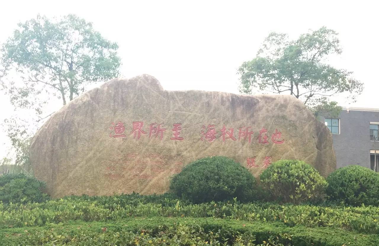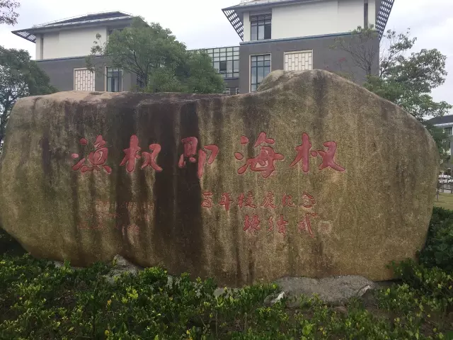 ▲上海海洋大学校园内的石碑,正面书张謇所提:渔界所至,海权所在也(上图);