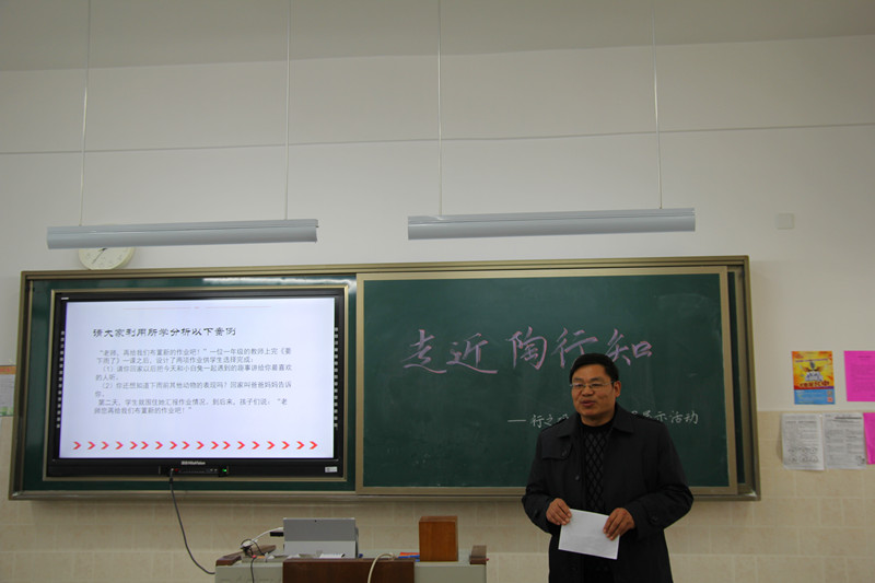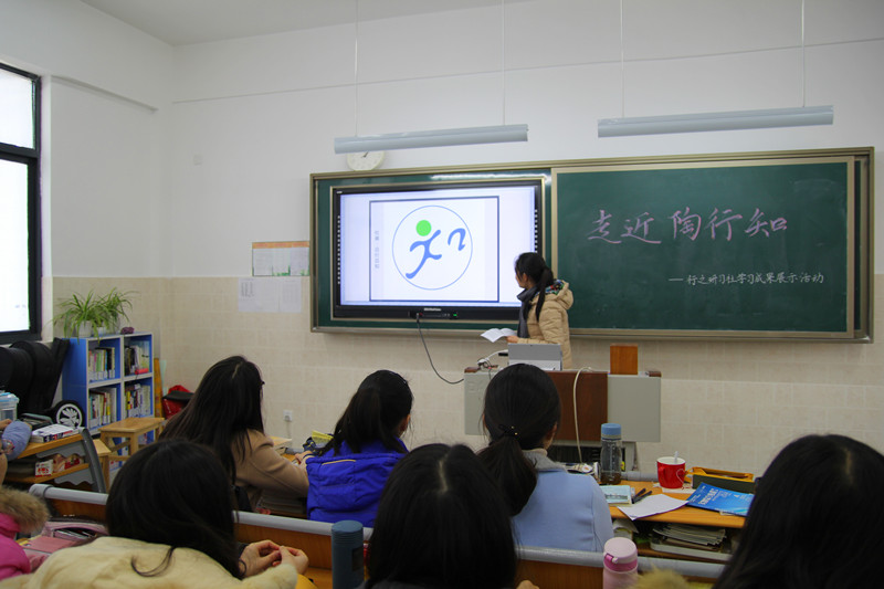 此次活动,首先由社长褚妍向大家介绍了该社团成立以后的学习、活动情况,并阐述了本次活动的目的和设想;接着,由六名学习小组代表以专题汇报的形式,图文并茂地向大家展示了各组的学习成果,同学们精彩的讲演博得现场阵阵掌声。最后, 李国忠 老师用陶行知的教育思想为大家解析了教学案例并对本次活动作了热情洋溢的点评。