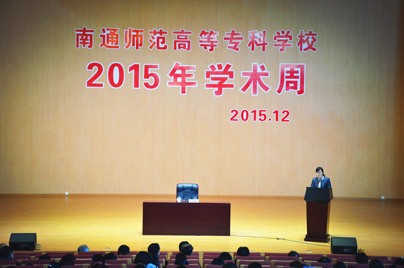 12月8日,风和日丽。新校区文昌楼和鹜新楼上两条对称的红色横幅“志存高远建内涵厚重的高素质教师队伍,同心同德创特色鲜明的高水平学术成果”格外引人注目。新落成的图文信息中心大楼门前,两块大型展板展出的本次学术周活动整体方案,吸引了许许多多教师和学生驻足观看。下午大约1:50分,从如皋校区、南通校区乘车赶来的教师和新校区的教师及人文系、数理系本科14班的学生纷纷涌入图文信息中心大报告厅,简朴而隆重的学术周开幕式即将在这里举行。