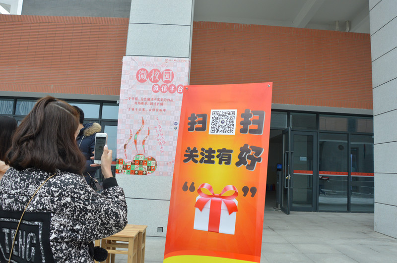 12月22日是我国传统的节日——冬至,新校区食堂广场前,电子屏、海报、宣传单表现着同样的主题——信息系启动电子商务课程实训项目,扫码送汤圆,扫码送礼品,回收二手物品,代卖水果,现场热闹而有序。一个中午的推广活动,“微校园”平台关注量激增至400多人。