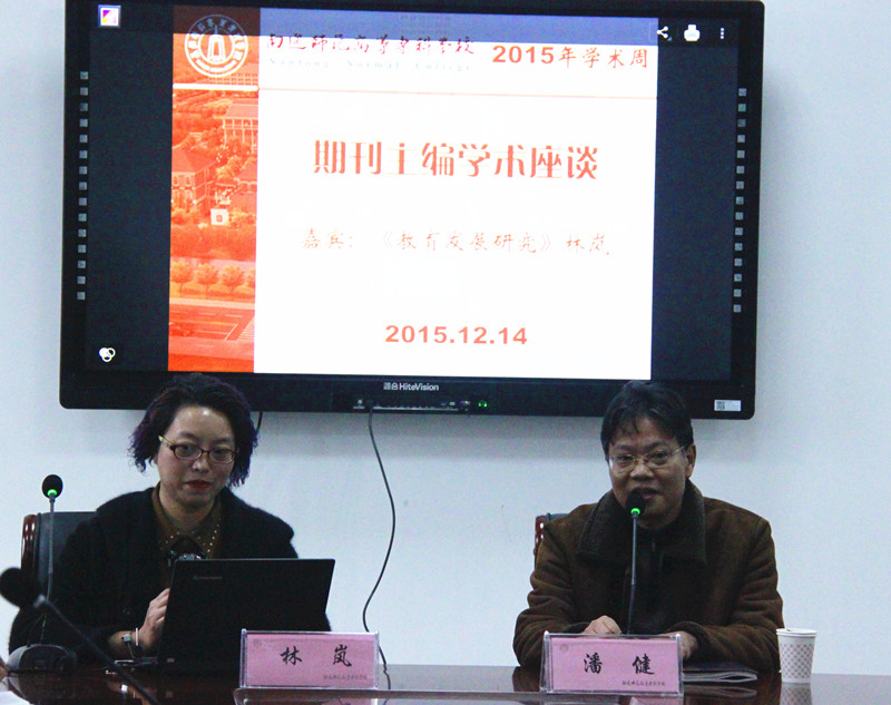 近日,校学术委员会先后邀请《中国教育学刊》杂志社社长、总编辑、博士生导师周长春老师和《教育发展研究》编辑部主任林岚老师来校讲学。两位老师分别对刊物的基本情况、办刊理念以及主要关注的问题作了介绍。周长春老师以“教育研究成果的价值定位”为题,围绕期刊与作者的烦恼、教研论文的多维透视、教研的经验与体会、提高成果发表命中率技巧进行了学术报告,林岚老师作了“基于实践问题的具有理性品性的研究”学术报告,林老师结合多个教育领域中抽取的大量案例分析,认为对实践问题的关注必须基于理性的反思,强调实践理性与实践智慧。在互动环节,我校老师就自己感兴趣的相关话题与两位专家进行了互动交流,气氛活跃。