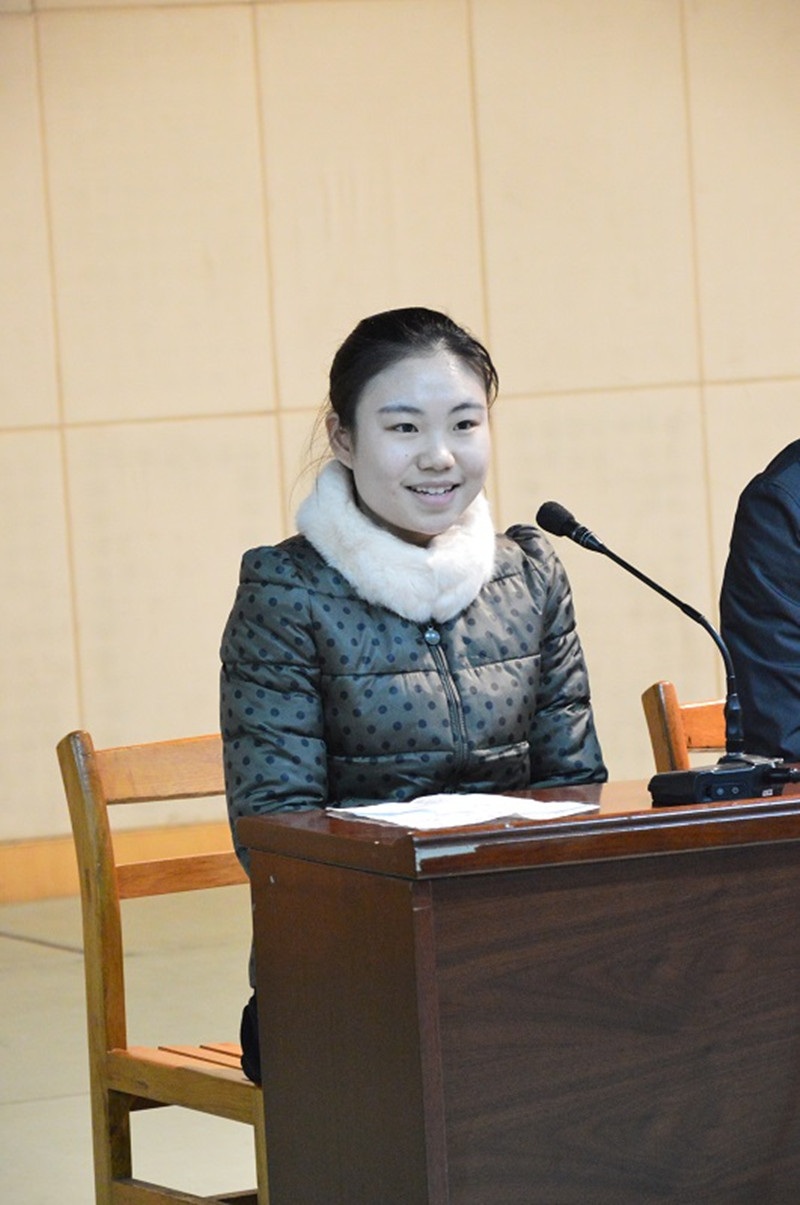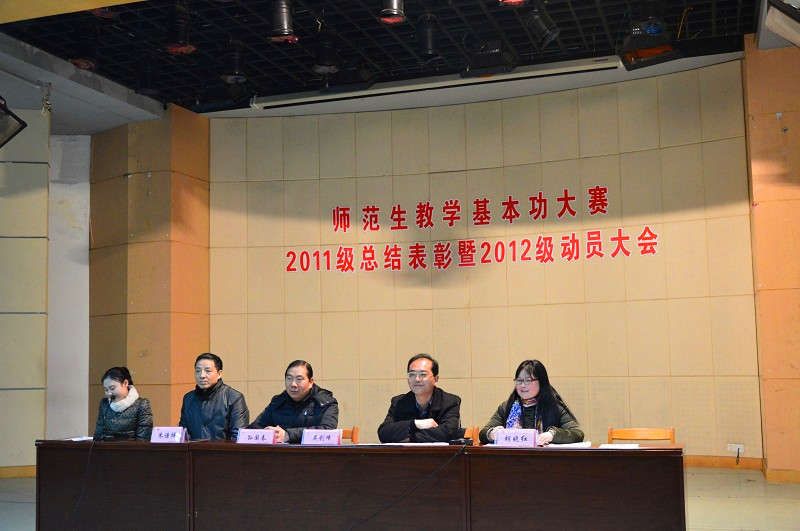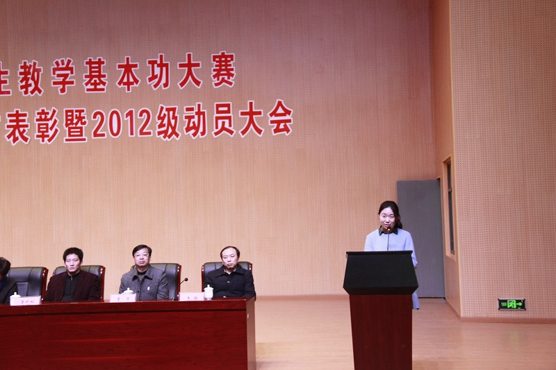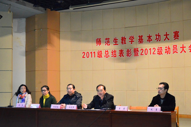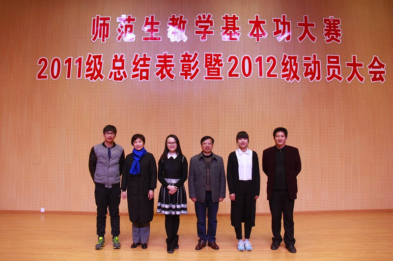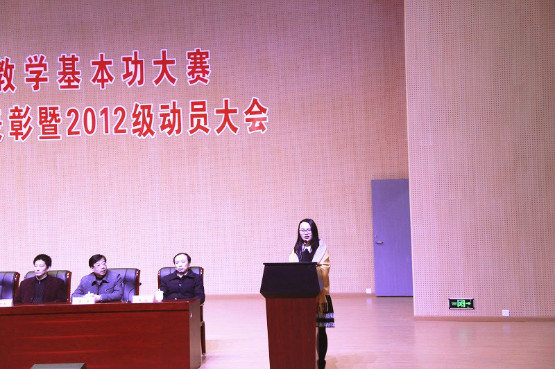 会上,我校参赛辅导团队的教师代表发言,与大家分享了集训辅导工作的体会和感想。参赛获奖选手的学生代表发言,向12级学弟、学妹们介绍了集训参赛的经验与感悟。12级学生代表也作了发言,号召12级全体同学,为参加第五届省师范生教学基本功大赛积极备战,努力拼搏,续写辉煌。