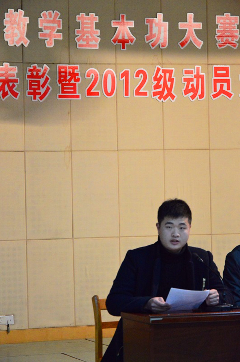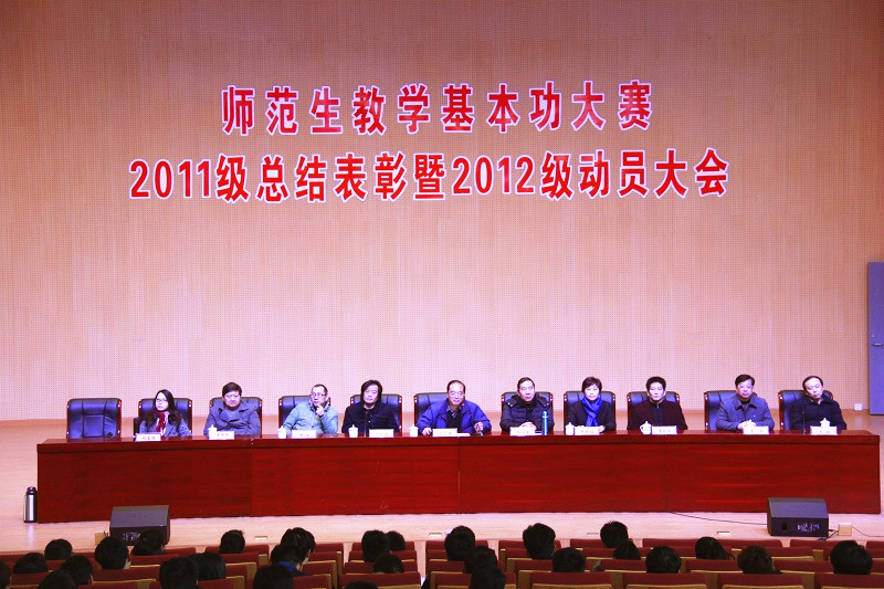 会上,教务处负责同志向12级同学们介绍了省师范生教学基本功大赛的比赛规程,并就参赛做出工作部署。要求同学们在思想上高度重视,认识上高度统一,每位同学都要明确目标、制定计划、全力投入、认真学习、勤学苦练,积极参加班级、系部、学校组织的相关活动和比赛,严格执行系部和学校的相关规定和纪律要求;各系部要把基本功大赛与学生的早晚基本功训练、学校的基本功过关、基本功汇报有机结合起来;各系部要认真研读大赛方案,领会大赛精神,要动员全体师生都来关心并积极参与这项工作;各系部要精选教师辅导队伍,充分发挥团队的力量。