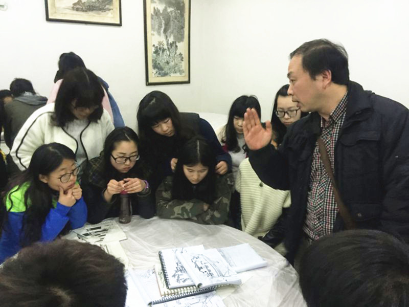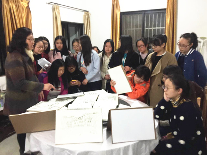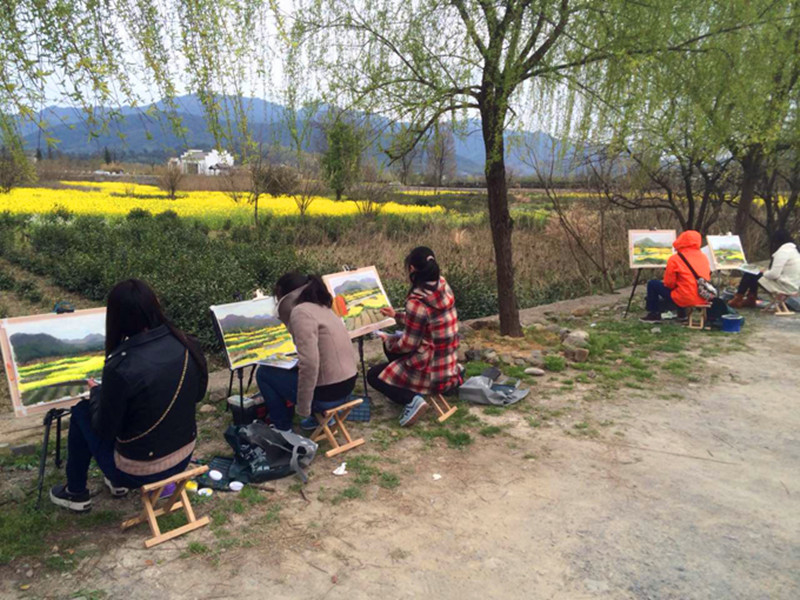 一到基地,同学们受到古村落千年文化意蕴的感染,便迫不及待观察周边的景色,提起画笔勾起了速写。在接下来的风景写生教学中,大家在老师的悉心指导下,白天穿梭于深浅不一的古巷,用画笔描绘古村落粉墙黛瓦的印象,用色块和线条记录了青山绿水环绕的徽派古建筑以及漫山遍野的油菜花,用相机捕捉古民居中惟妙惟肖的“三雕”造型。晚上指导老师认真点评学生的作业,学生提问,老师答疑解惑,提出解决问题的方法,明确第二天的作业要求;班主任老师深入学生的宿舍,关心学生的生活,帮助学生解决生活中遇到的问题。指导老师的精心指导让同学们体验到了专业成长的快乐,班主任老师无微不至的关心让大家感受到了集体生活的温暖。