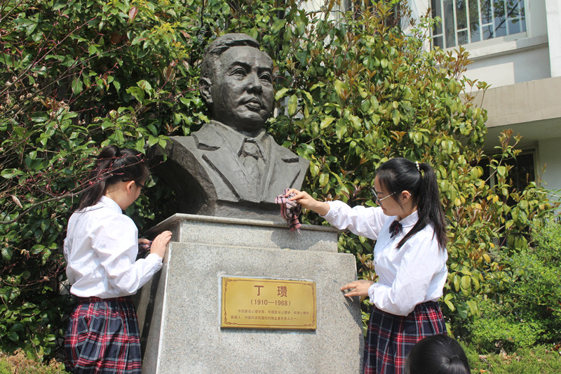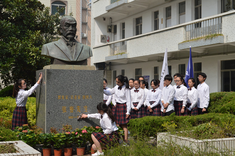 继承传统,缅怀先辈是此次活动的基本主题。同学们排着整齐的长队,依次参观祭扫了张謇、刘瑞龙、丁瓒三位先生的雕像,“中共江苏省第一代用师范支部”纪念标志和“千古雄魂”纪念碑。首先,同学们对雕像认真进行了擦拭和整理;接着,学生代表为这几位先生的雕像敬献花篮。师生们怀着无限敬仰,低头默哀,告慰英灵。最后,胡晓红书记和同学们重温了三位先辈的事迹和“红色师范”、“革命摇篮”的历史。